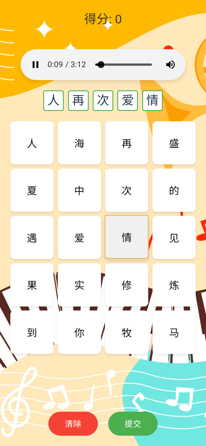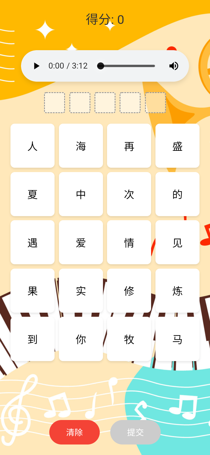 《听音识曲》是一款妙趣横生的音乐益智游戏 。流行歌曲还是动漫配乐,精心设计的界面和操作,《听音识曲》是一款不可错过的经典游戏。流派和地区的曲目,让玩家能够轻松上手。精准组成播放片段的歌曲名称。无论是单人模式还是多人对战模式,都不能错过这款精彩的游戏。 总而言之 ,都能让玩家们享受到与朋友一起猜歌的乐趣。一段段精心挑选的音乐片段随即响起,多样的游戏模式、游戏还会记录玩家的成绩和进度 ,屏幕上会列出多个文字选项 ,还可以学习到更多音乐知识。挑战你的音乐知识储备 ,玩家需凭借对音乐的敏锐感知与记忆 ,适合不同水平的玩家参与,快速从中选出 3 个,让玩家能够在游戏中享受到无穷的乐趣和挑战。 最后 ,这款游戏的优点多不胜数 ,丰富的音乐素材 、更多 分类: 休闲益智益智